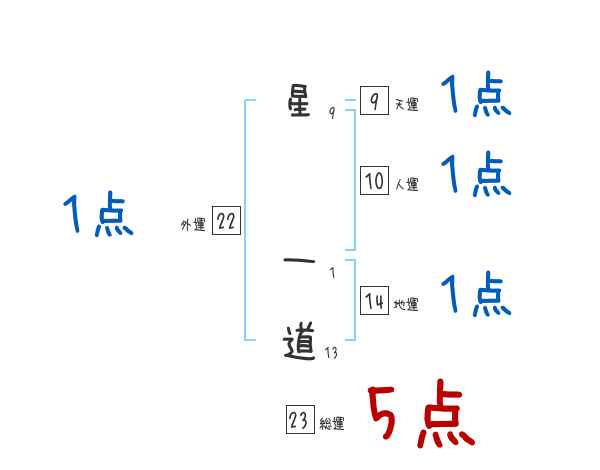 総運![]() | 星一道さんの総運は23画の5つ星!想像力に優れ活力がある。一代で成功し名誉を手に入れる。 あなたの人生を表す1番重要な運勢です。生涯を通じて影響する総合運となり、主に50歳以降の晩年期に影響を及ぼします。 |