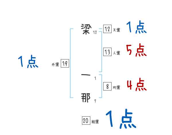 梁一那さんの画数の鑑定結果