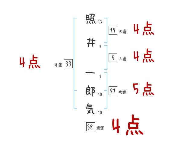 外運![]() | 照井一郎気さんの外運は33画の4つ星!権力志向でプライドが高い。勇気があり運を切り開き成功する。 生活面を象徴する運勢です。外部から受ける影響力を表し、結婚運、家庭運や職場、環境への順応性を表します。 |