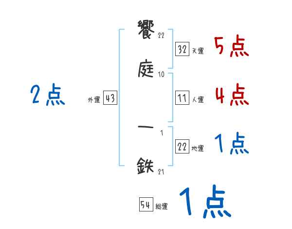 饗庭一鉄さんの画数の鑑定結果