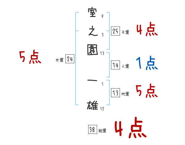 室之園一雄さんの画数の鑑定結果
