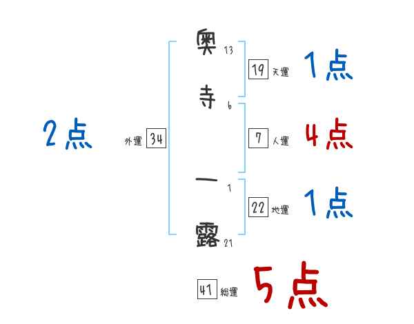 天運![]() | 奥寺一露さんの天運は19画の1つ星!優れた才能を持ちますが、協調性が足りないことも。周りの人と協力する事を意識しましょう。 家系が持つ宿命的な運勢を表します。祖先から受け継いだ苗字ですので自分の力が及びません。家柄を象徴します。 |