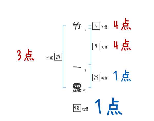 総運![]() | 竹一露さんの総運は28画の1つ星!家庭環境に注意。スポーツで活躍できる能力があるかも。 あなたの人生を表す1番重要な運勢です。生涯を通じて影響する総合運となり、主に50歳以降の晩年期に影響を及ぼします。 |