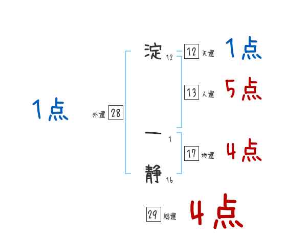 淀一静さんの画数の鑑定結果