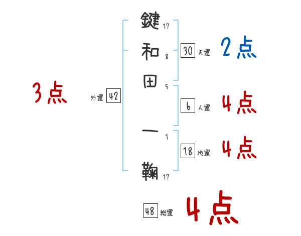 鍵和田一鞠さんの画数の鑑定結果