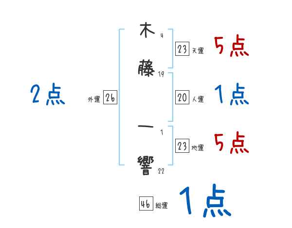 木藤一響さんの画数の鑑定結果