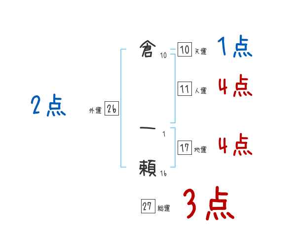 倉一頼さんの画数の鑑定結果
