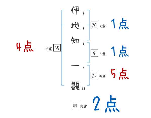 総運![]() | 伊地知一顕さんの総運は44画の2つ星!誠実で慎重な性格。物事を考えすぎないように注意しましょう。 あなたの人生を表す1番重要な運勢です。生涯を通じて影響する総合運となり、主に50歳以降の晩年期に影響を及ぼします。 |