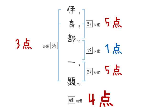 天運![]() | 伊良部一顕さんの天運は24画の5つ星!家庭運が良く順調な人生。金運にも恵まれる。 家系が持つ宿命的な運勢を表します。祖先から受け継いだ苗字ですので自分の力が及びません。家柄を象徴します。 |