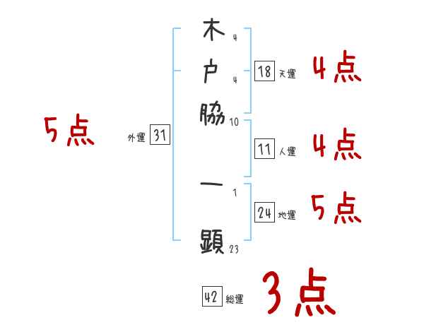 天運![]() | 木戸脇一顕さんの天運は18画の4つ星!情熱的で剛気。忍耐力があり信頼される。 家系が持つ宿命的な運勢を表します。祖先から受け継いだ苗字ですので自分の力が及びません。家柄を象徴します。 |