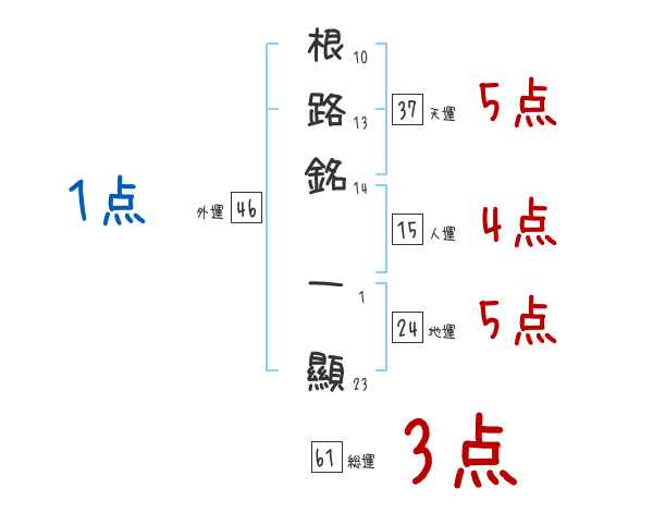 根路銘一顯さんの画数の鑑定結果
