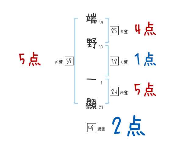 端野一顯さんの画数の鑑定結果