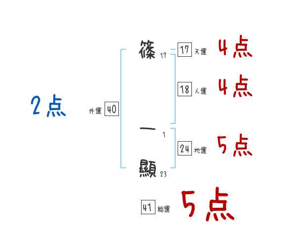 篠一顯さんの画数の鑑定結果