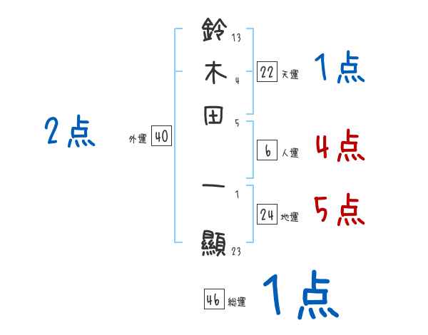 天運![]() | 鈴木田一顯さんの天運は22画の1つ星!努力することが苦手ないっぽう手先が器用。芸術性にも優れる。 家系が持つ宿命的な運勢を表します。祖先から受け継いだ苗字ですので自分の力が及びません。家柄を象徴します。 |