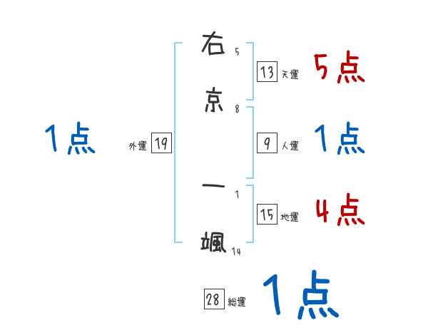 右京一颯さんの画数の鑑定結果