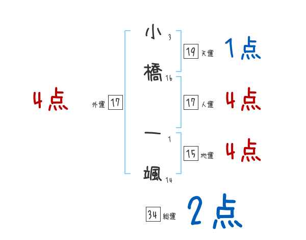 小橋一颯さんの画数の鑑定結果