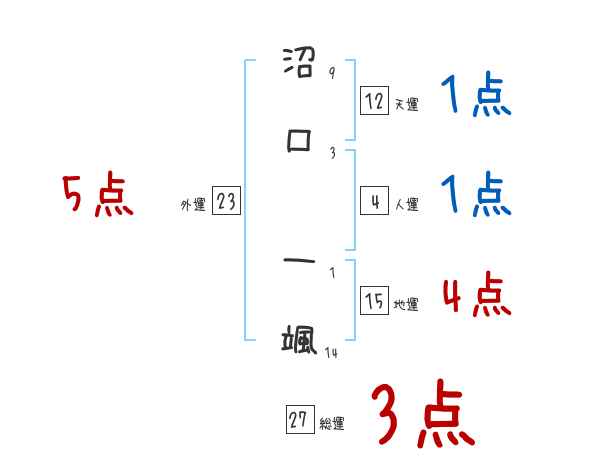 沼口一颯さんの画数の鑑定結果