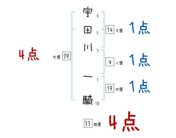 宇田川一騎さんの画数の鑑定結果