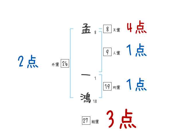 外運![]() | 孟一鴻さんの外運は26画の2つ星!波瀾万丈かも。信頼できる人を大事にしましょう。 生活面を象徴する運勢です。外部から受ける影響力を表し、結婚運、家庭運や職場、環境への順応性を表します。 |