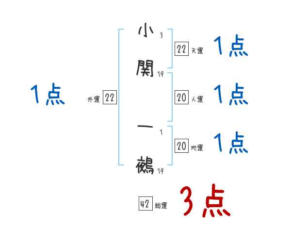 小関一鵺さんの画数の鑑定結果