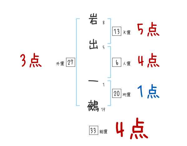 岩出一鵺さんの画数の鑑定結果