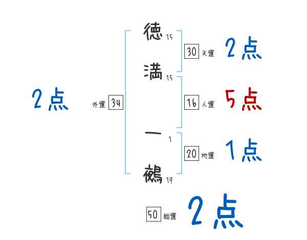 徳満一鵺さんの画数の鑑定結果