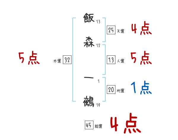 飯森一鵺さんの画数の鑑定結果