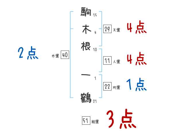天運![]() | 駒木根一鶴さんの天運は29画の4つ星!完全主義で才能がある。厳格な心の持ち主。 家系が持つ宿命的な運勢を表します。祖先から受け継いだ苗字ですので自分の力が及びません。家柄を象徴します。 |
