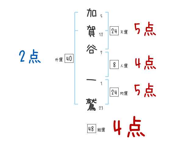 加賀谷一鷲さんの画数の鑑定結果