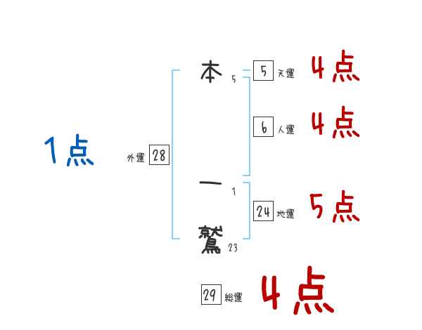 本一鷲さんの画数の鑑定結果