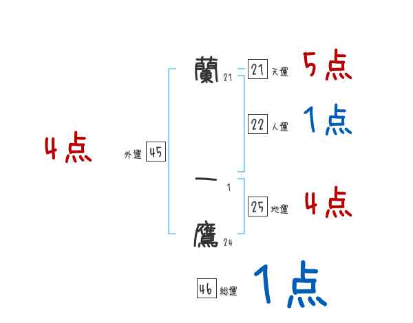 蘭一鷹さんの画数の鑑定結果