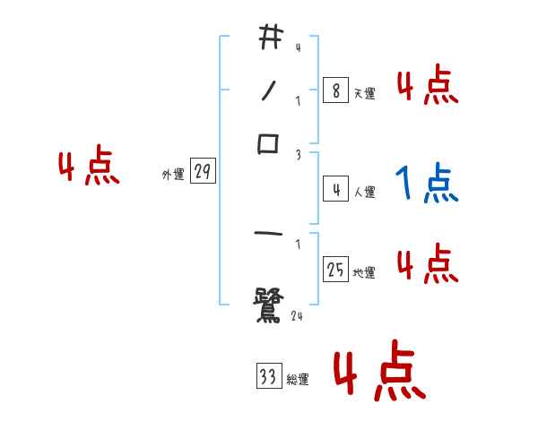天運![]() | 井ノ口一鷺さんの天運は8画の4つ星!勤勉家。根気強く努力し成功する。忍耐力がある。 家系が持つ宿命的な運勢を表します。祖先から受け継いだ苗字ですので自分の力が及びません。家柄を象徴します。 |