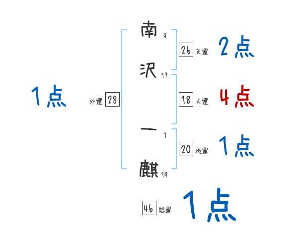 総運![]() | 南沢一麒さんの総運は46画の1つ星!迷走することが多く苦労するかも。目先のことにとらわれないように。 あなたの人生を表す1番重要な運勢です。生涯を通じて影響する総合運となり、主に50歳以降の晩年期に影響を及ぼします。 |
