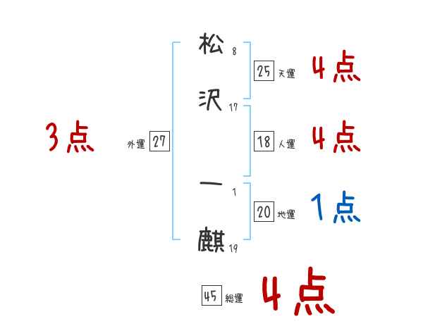 松沢一麒さんの画数の鑑定結果