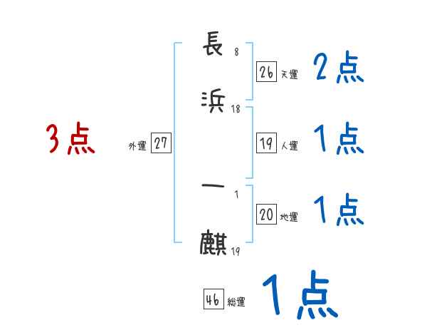 長浜一麒さんの画数の鑑定結果