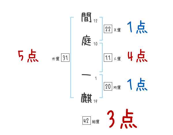 間庭一麒さんの画数の鑑定結果