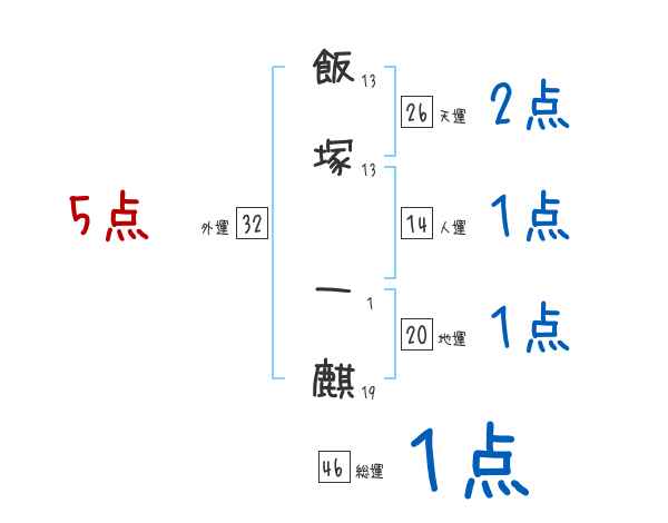 外運![]() | 飯塚一麒さんの外運は32画の5つ星!柔軟性があり成功する。チャンスが多く金運が良い。 生活面を象徴する運勢です。外部から受ける影響力を表し、結婚運、家庭運や職場、環境への順応性を表します。 |