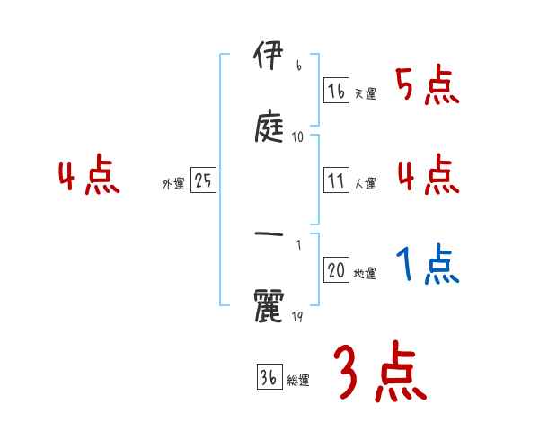 伊庭一麗さんの画数の鑑定結果