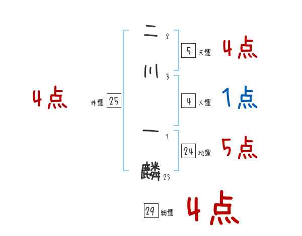 二川一麟さんの画数の鑑定結果