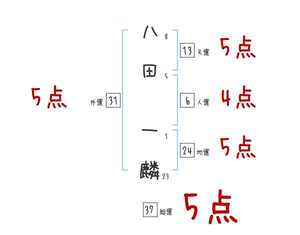 八田一麟さんの画数の鑑定結果