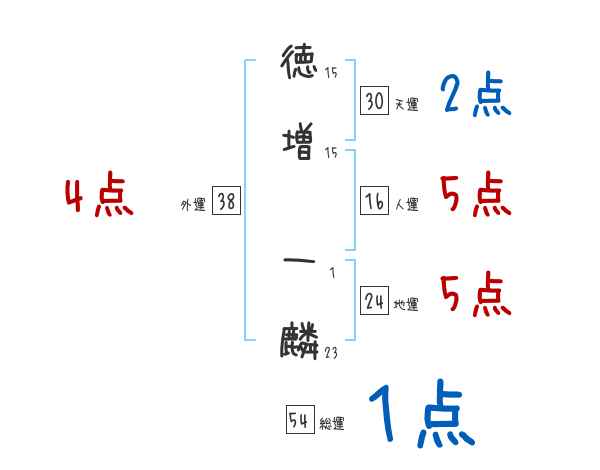 徳増一麟さんの画数の鑑定結果
