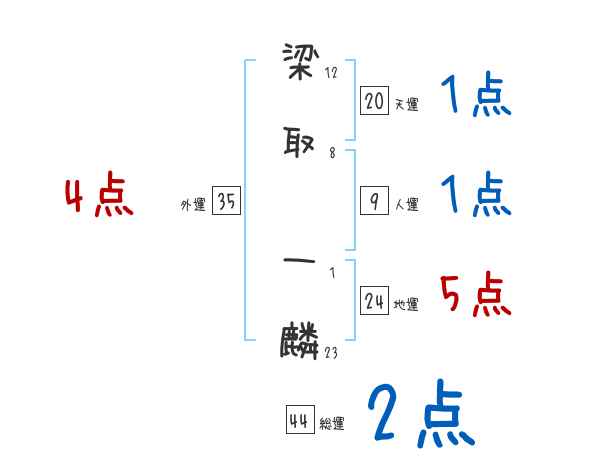 梁取一麟さんの画数の鑑定結果