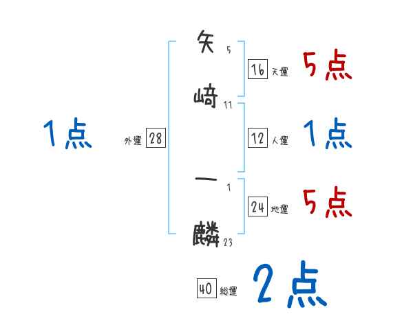 矢﨑一麟さんの画数の鑑定結果