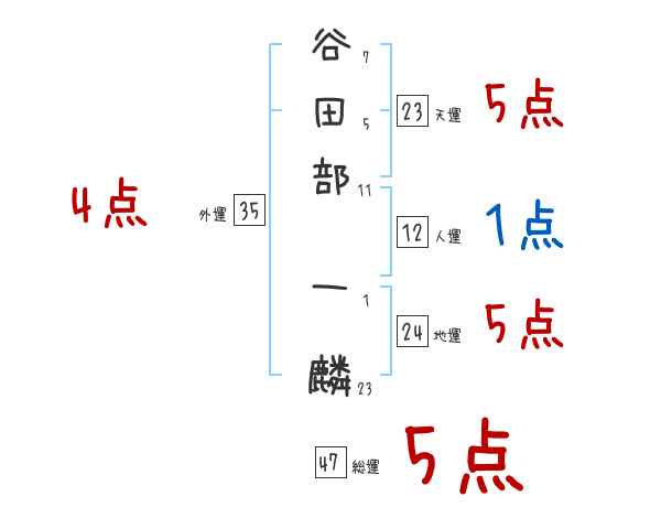 谷田部一麟さんの画数の鑑定結果