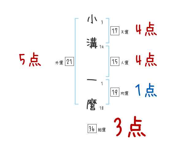 小溝一麿さんの画数の鑑定結果
