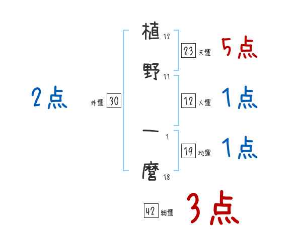 外運![]() | 植野一麿さんの外運は30画の2つ星!浮き沈みの激しさに注意しましょう。 生活面を象徴する運勢です。外部から受ける影響力を表し、結婚運、家庭運や職場、環境への順応性を表します。 |