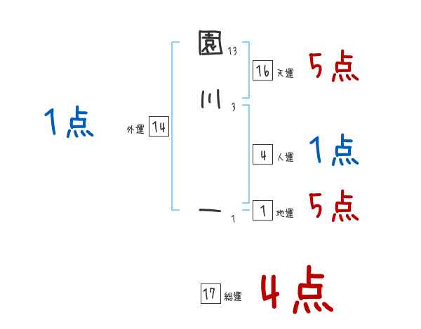 外運![]() | 園川一さんの外運は14画の1つ星!人に対して優しいがストレスを溜め込みがち。人間関係のトラブルを避けるよう気をつけましょう。 生活面を象徴する運勢です。外部から受ける影響力を表し、結婚運、家庭運や職場、環境への順応性を表します。 |