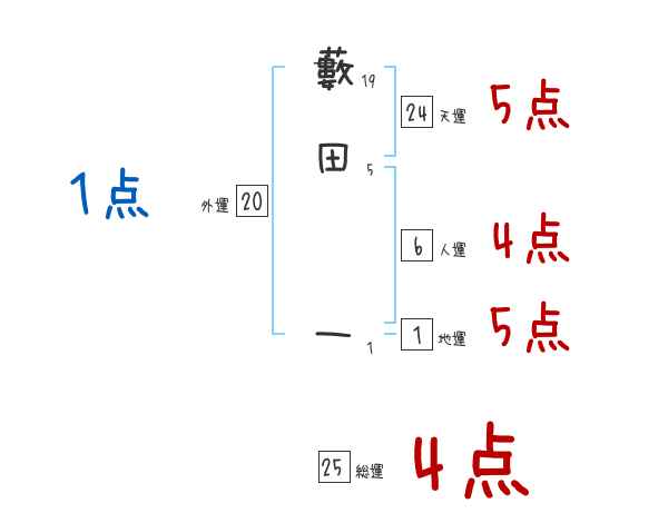 藪田一さんの画数の鑑定結果