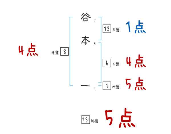 谷本一さんの画数の鑑定結果