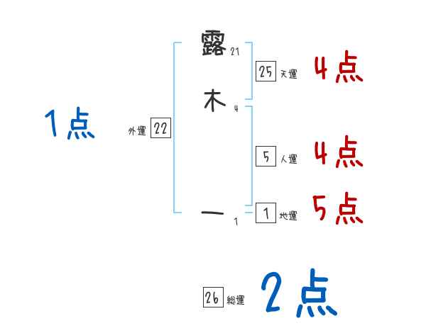 外運![]() | 露木一さんの外運は22画の1つ星!努力することが苦手ないっぽう手先が器用。芸術性にも優れる。 生活面を象徴する運勢です。外部から受ける影響力を表し、結婚運、家庭運や職場、環境への順応性を表します。 |